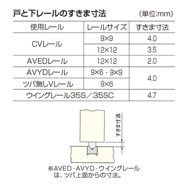 CVレール、AVEDレール、AVYDレール、ツバ無しVレール、ウイングレールに対応します。