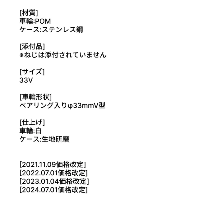 材質は、車輪がPOM、ケースがステンレス鋼です。