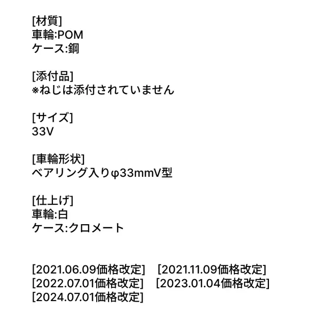材質は、車輪がPOM、ケースが鋼です。