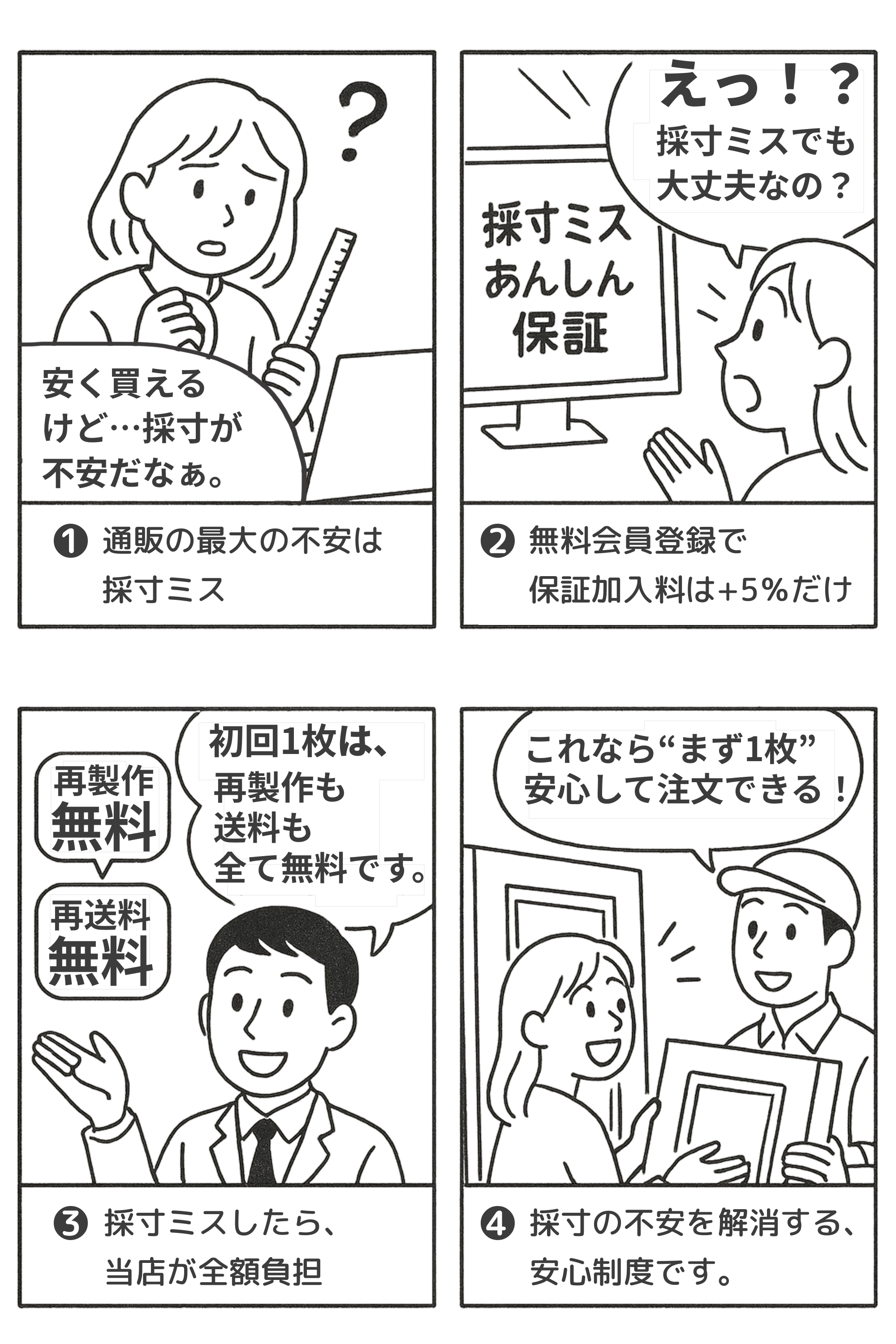 万が一、採寸ミスがあった場合、再製作費用・往復送料を当店が全額負担します。